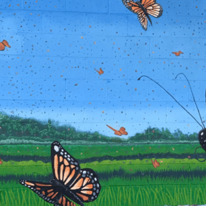 Monarch mural painting at Eliseo Valdez Jr Park (Jefferson St. and San Francisco Ave.)